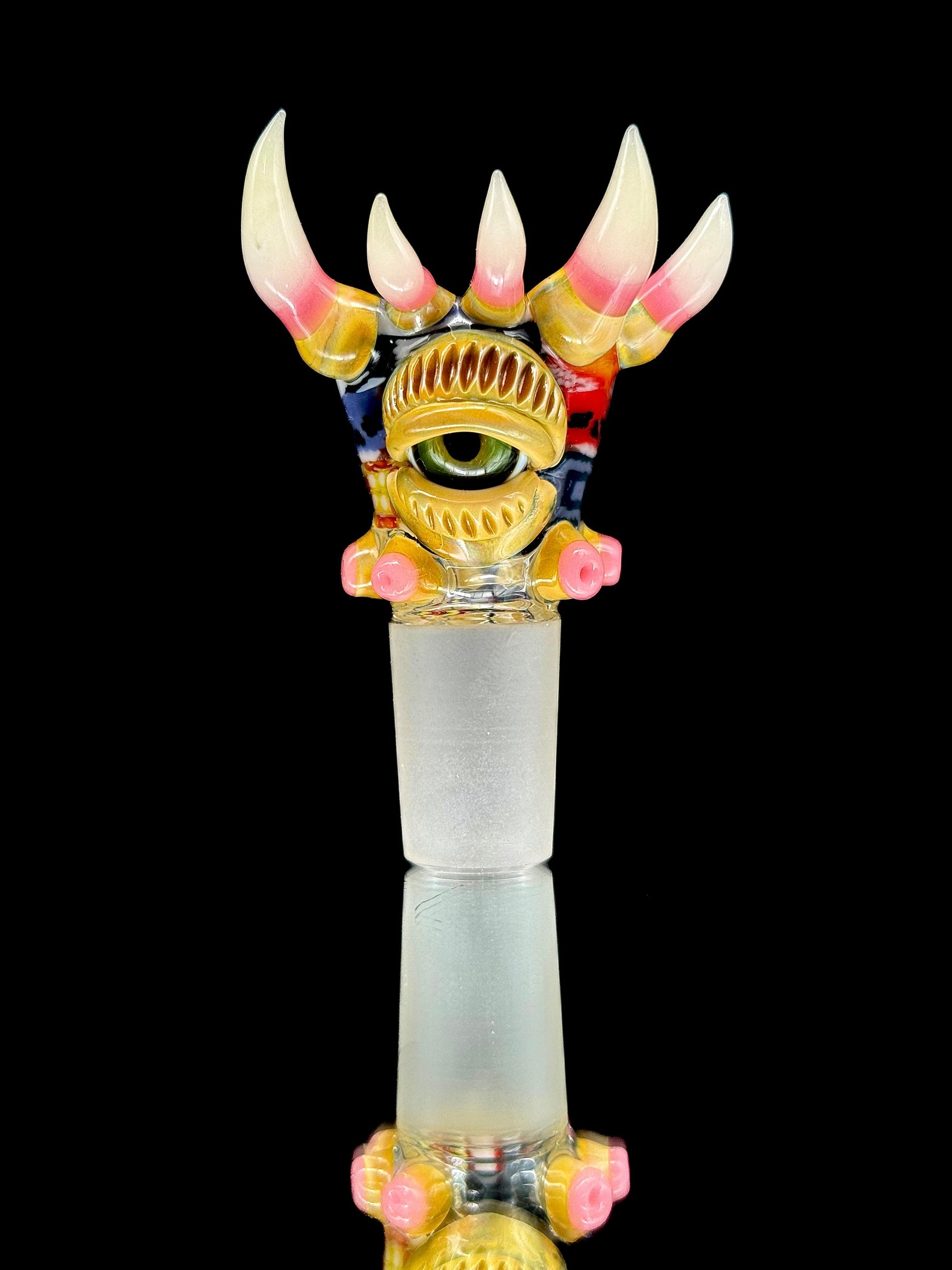 Raku accents with Uv reactive millie chips. 4 hole screen.