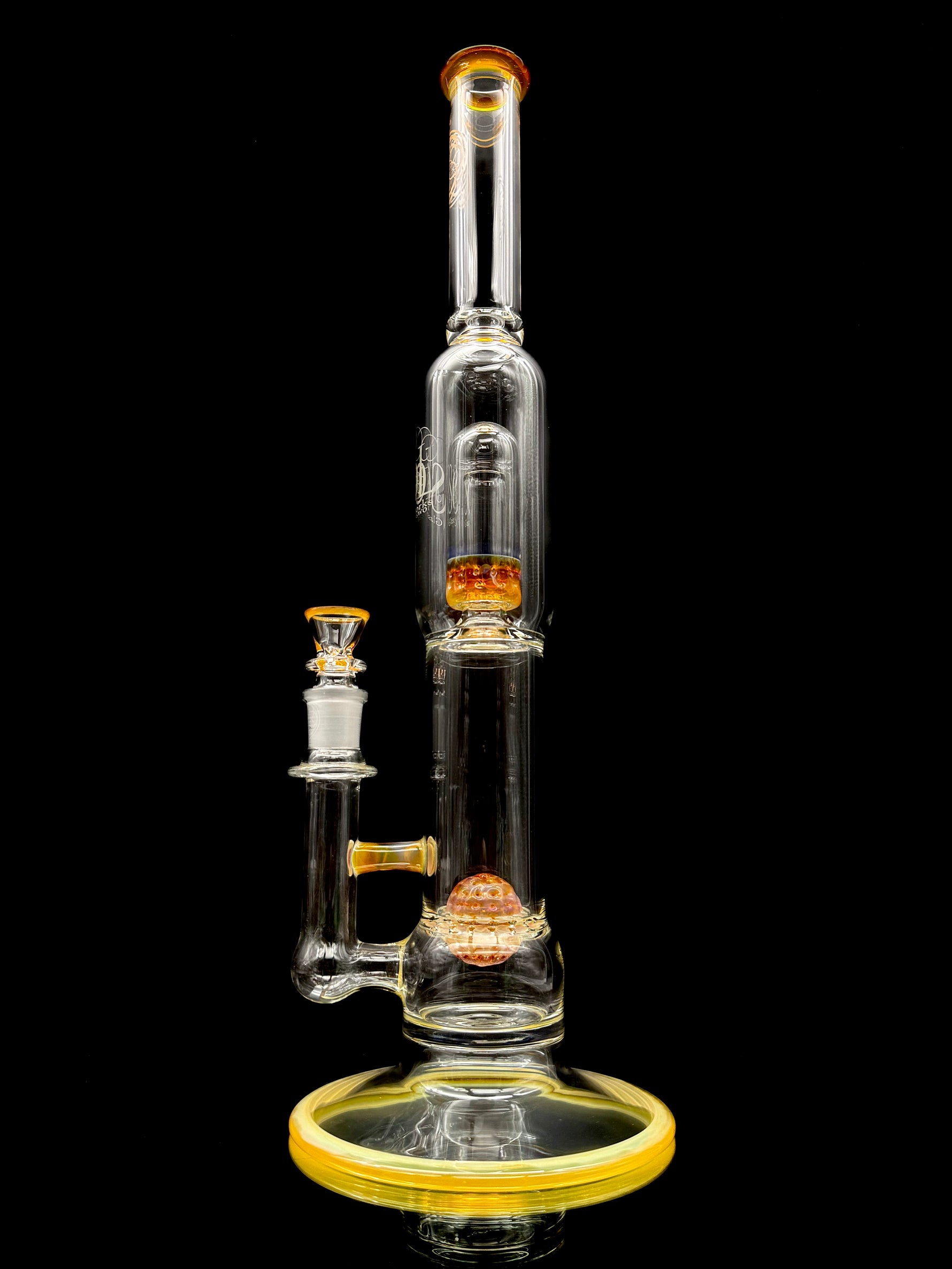 NS Yellow accented. 18mm joint with 3 hole screen slide. Standing at 18" tall.